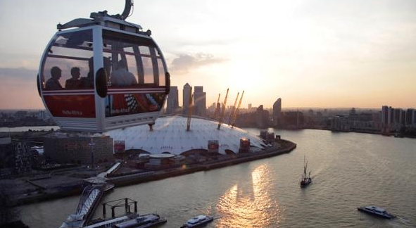 - monter dans le téléphérique de Londres à 54 m de haut pour relier Greenwich au Royal Victoria Docks par dessus la Tamise,