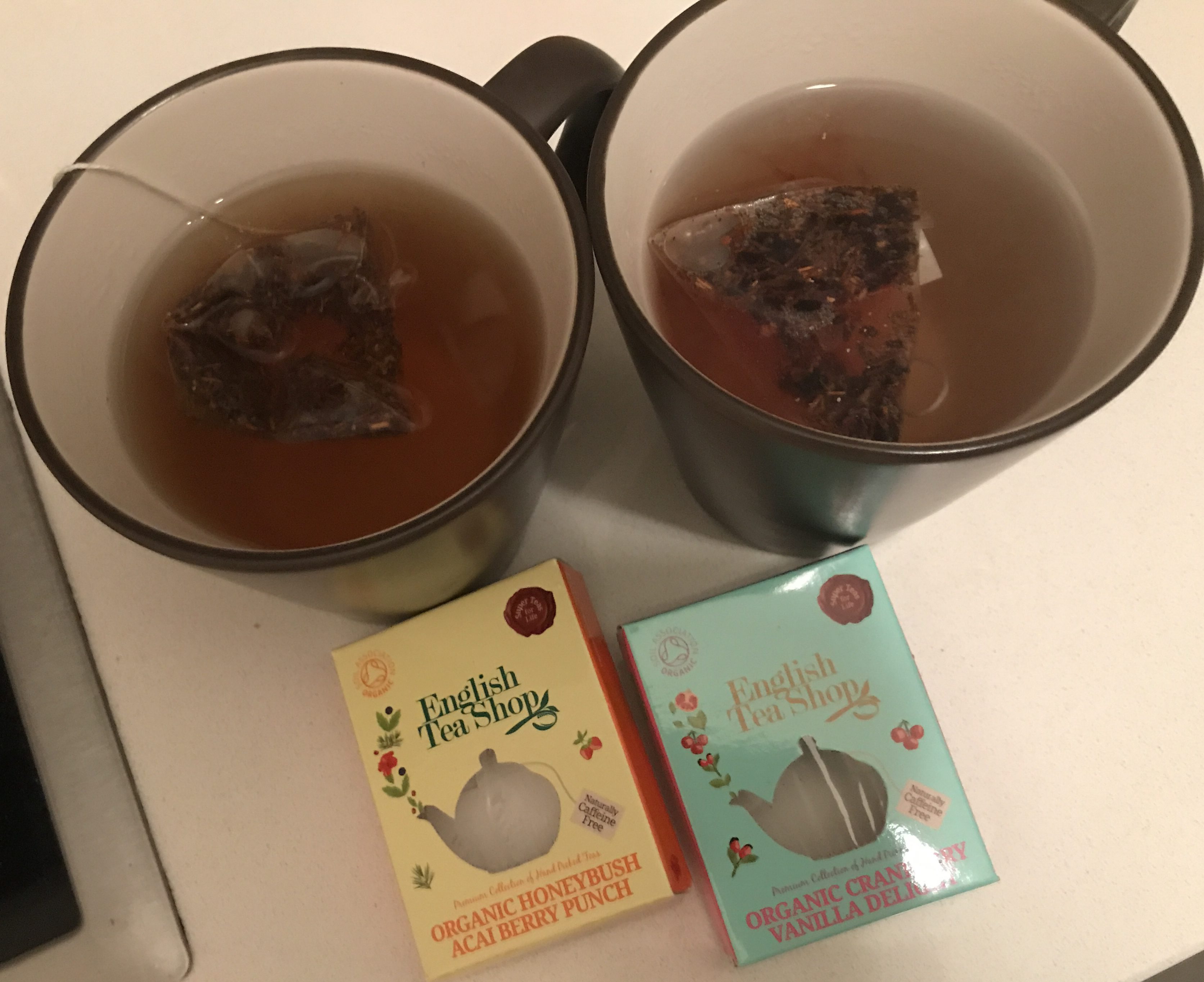 English tea shop avec absolutely yummy : le white tea blueberry et elderflower était divin, j’adore les blueberry. Cranberry vanilla delight, bien, sans plus, avec vanille et pêche, framboises et cranberries. Honeybush acai berry punch, bon, sans plus, mais ça, c’est l’hibiscus, ça change beaucoup le goût, je trouve.